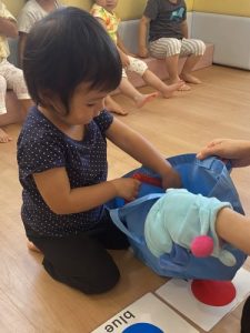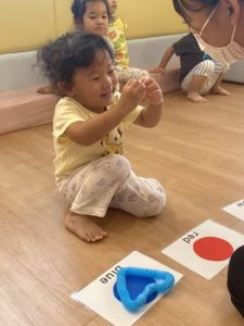 この日は、形と色を組み合わせた英語をみんなで練習し、