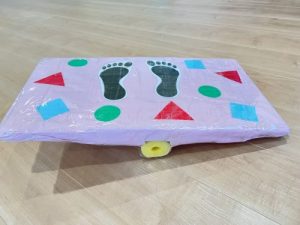 これは、足型の上に立ち、左右の足に体重をかけバランスを楽しむものです。