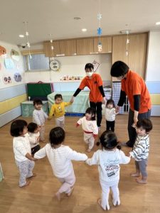 子どもたちから手を繋いで歌って丸を作ってくれます👏