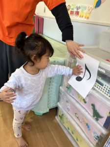 ピッチやリズムを真似してタンブリンを叩けるようになってきました。