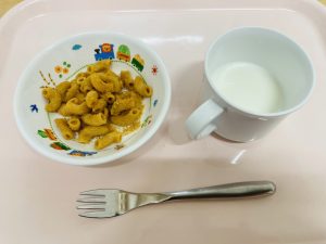 ※今日も、美味しそうに一生懸命自分で食べている姿が見られました。入園された子も落ち着いて食べることができています。