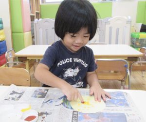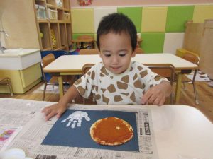 フィンガーペイントでお月様の模様をつけて楽しみました![]()