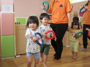 少し長い単語も、先生の真似っこを楽しむ姿が見られますよ![]()