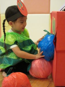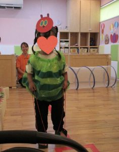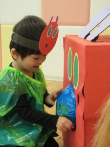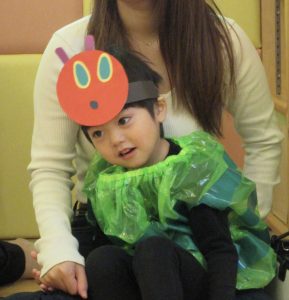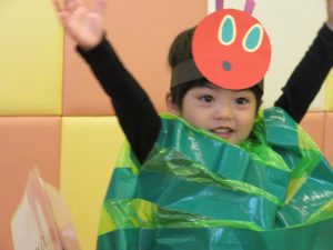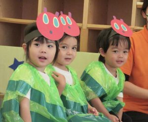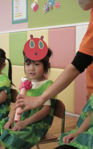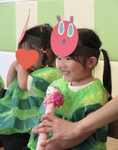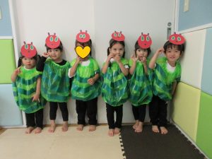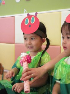 頭につけているあおむしのお顔は自分たちで目とお口をつけましたよ♪
