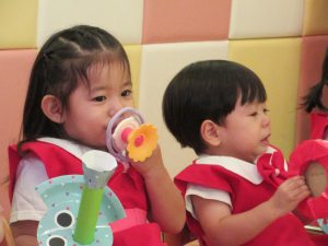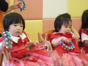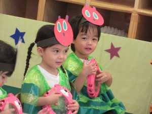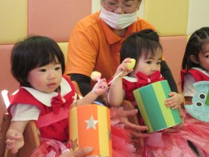 「どんぐりころころ」や「きらきら星」をリズムに乗って楽しみました![]()