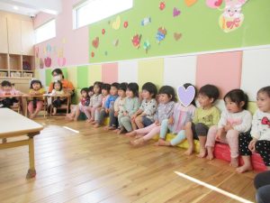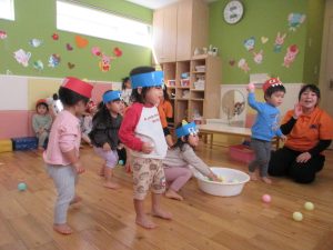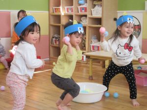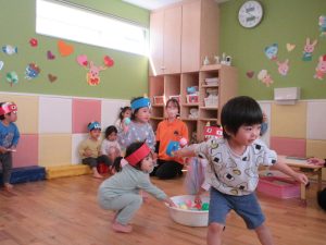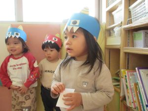 「おにのぱんつ♪」を歌ったりお部屋で鬼探しゲームをやって楽しみましたよ![]()