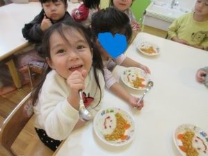 みんなに大好きメニューのカレーが鬼カレーになっていましたよ♪