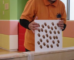 少しずつ増えていくどんぐりに一生懸命見つめています。