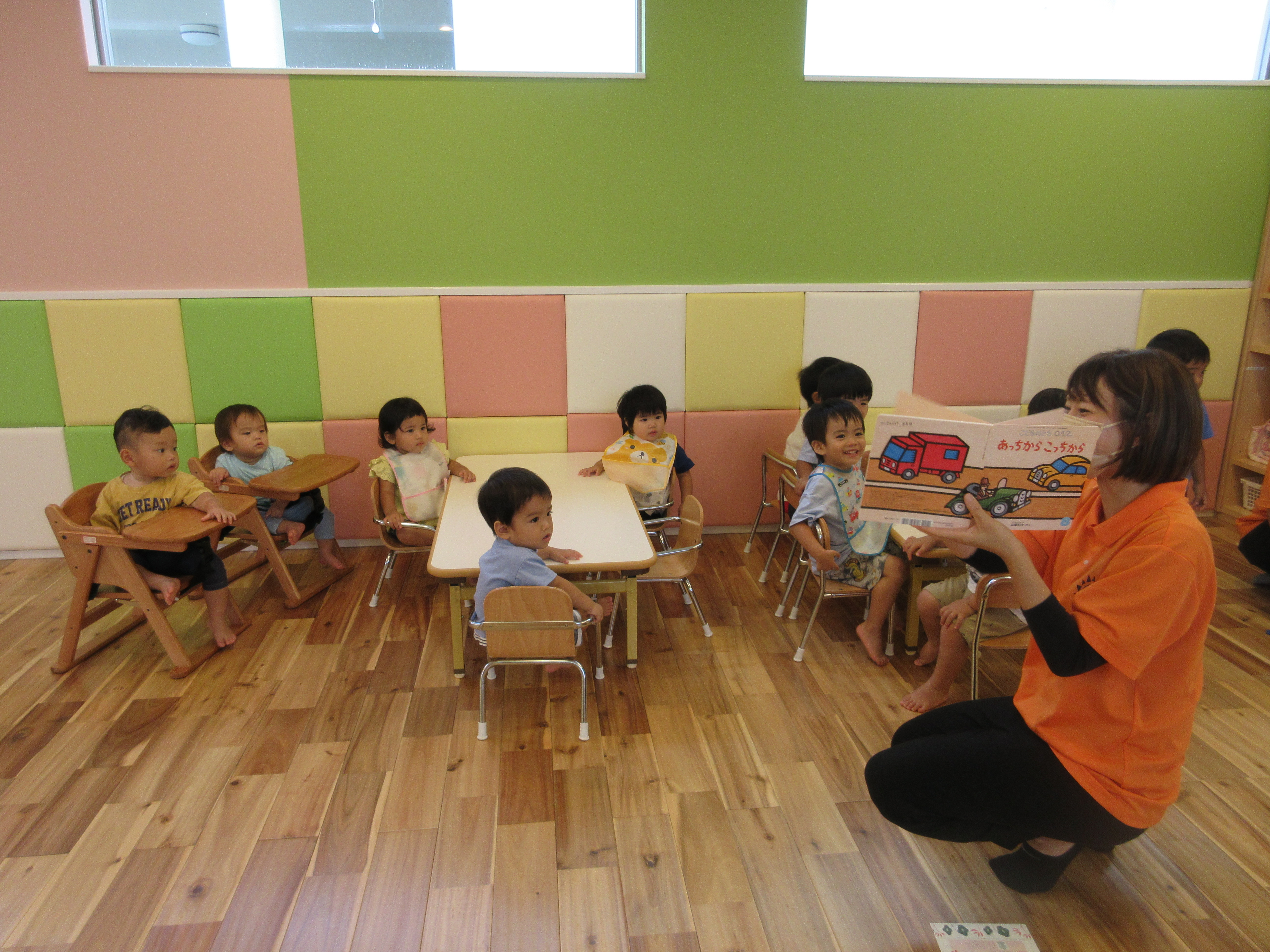園では、活動の節目に絵本の読み聞かせを行っています。