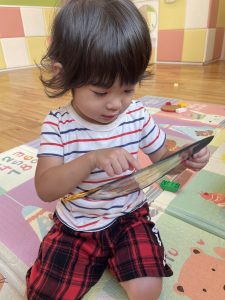 初めてのツルツルの素材にも興味津々で遊びこむ姿が見られましたよ♪