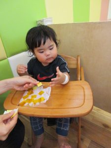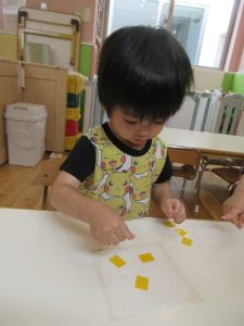 りんご組さんは、1人ひとり集中して貼り進めていく姿が見られましたよ♪