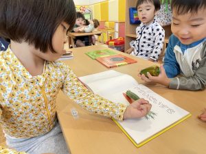 いつもは先生たちが絵本の読み聞かせをしていますが、