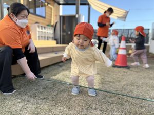 跳んだり、くぐったり、お友達と笑い合ってたくさん身体を動かして身体はポカポカです🥰