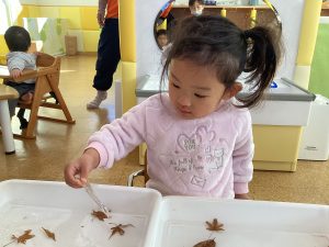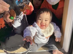 先日、氷🧊を作ってみんなで『つめたーい』と言って触ったり、目で見て楽しみましたよ🎶
