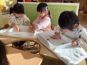 寒い日が続いてますね😌朝登園した際に白い息💨が出たり、園庭には霜柱が出来ていたり