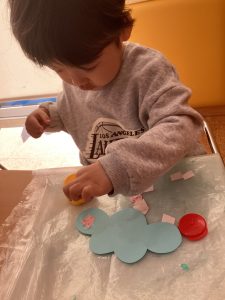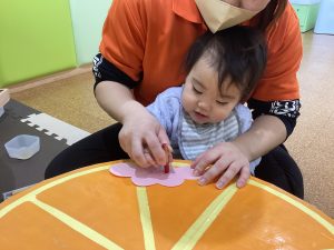◯りんご組‥のりを使って、折り紙を貼りましたよ😆