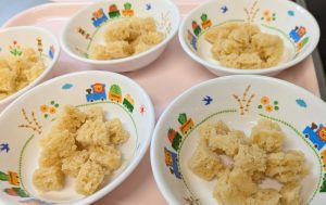 今日の給食は、ツナのナポリタンでした。「おいしーい♪」と言いながらたくさん食べてくれて、とても嬉しいです♪