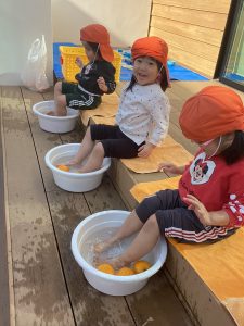 寒い日が続くようになりましたね‥先日、柚を使った食育活動を行いお友達みんなで足湯を行いましたよ✨