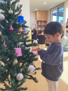 ベイビーシャークのお歌をやった後に、お買い物をしてクリスマスツリー🎄にみんなで飾りをつけました✨