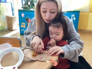 サンタさんとトナカイのリースを親子で作りましたよ✨