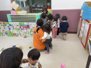 今週は雪が降ったり天気が悪かったため、お部屋の中で目一杯身体を動かして遊びました