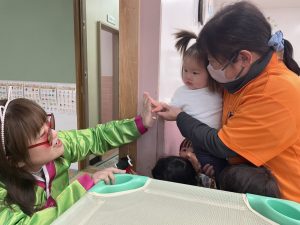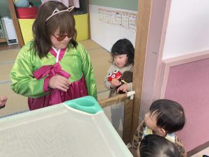 福の神を怖がって泣いてしまっていたお友だちも泣かずに触れ合うことができました