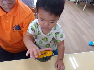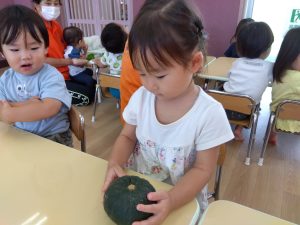 先週は食育活動の一環で「かぼちゃ」に触れた子どもたち