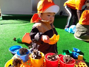 松ぼっくり拾いを楽しむお友だちもいますよ