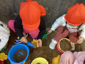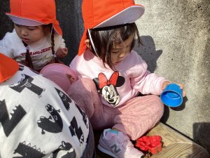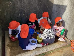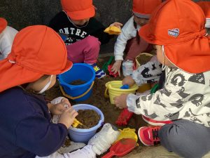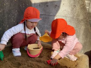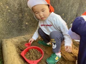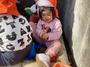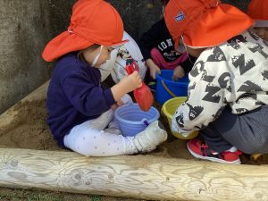 コンパクトな砂場ですが、子どもたちは砂遊びを満喫しています