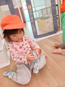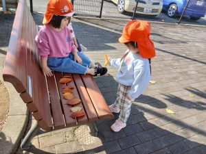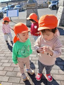 「お散歩に行くよ〜」と声をかけると、嬉しそうに支度を始める子どもたちです ![]()