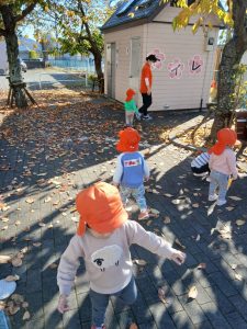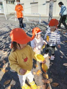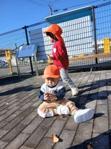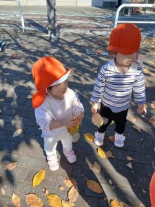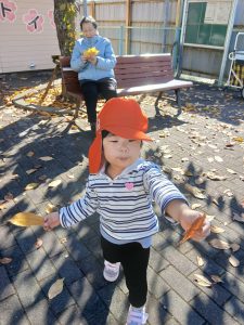 散歩先では、落ち葉を拾ったり追いかけっこをして楽しんでいます
