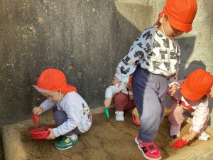 コンパクトな砂場ですが、子どもたちは砂遊びを満喫しています