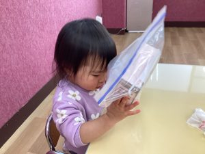 ビー玉転がしでは、不思議そうに箱の中を覗き込んでいました