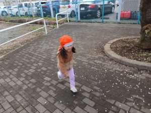 子どもたちは珍しい雪景色に大興奮でした