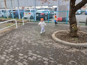 河津桜のある広場では、桜の花を観察したり花びらを拾って嬉しそうに見せてくれました