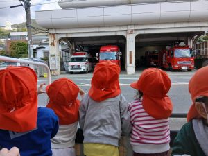 消防車を眺めたり、道路を走る車を見てとても嬉しそうでした