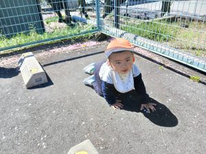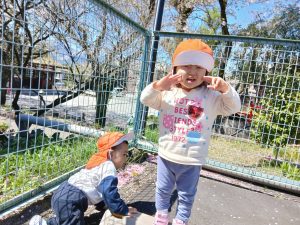 りんご組のお友だちも園庭遊びやお散歩に出かけて楽しんでいます