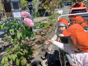 もも組といちご組のお友だちが一緒にお散歩に出かけました