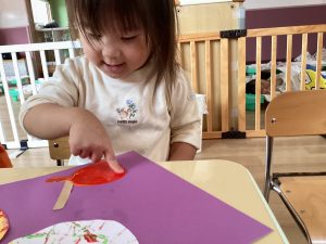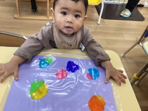 絵の具が潰れて広がる感触を楽しみながら取り組んでいました