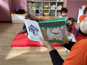この絵本は、サンライズキッズ保育園で定期購読できる絵本の1冊になります