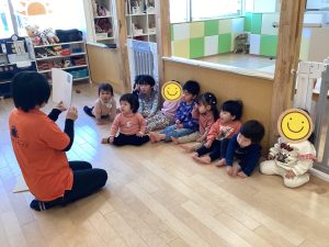 こんにちは☀️サンライズキッズ保育園 西明石園です😊今回は、夕方の自由時間での紙芝居の様子を…