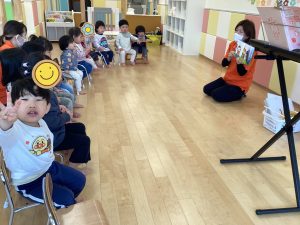こんにちは☀️サンライズキッズ保育園西明石園です😊今日は朝の会での紙芝居の様子をお伝えします…