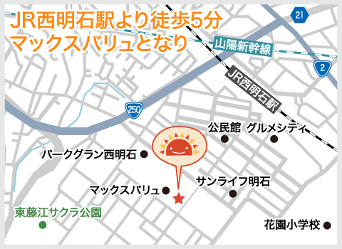 - 兵庫県明石市西明石南町3丁目3-30 / JR西明石駅から徒歩5分