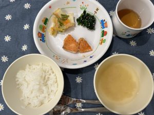 子どもたちの大好きなお魚献立でした。子どもたちは、スプーンでごはんにお魚をのせ、おいしそうに食べていました!