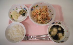 <幼児食> *ごはん *みそ汁 *親子煮 *粉ふき芋 *しめじと野菜のソテー  ...