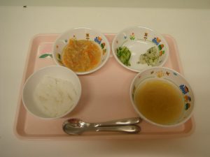 2018-12-25 12月25日の給食☺ Category:給食ピックアップ <幼児食> *ごはん *みそ汁 *照り焼きチキン *大根サラダ *粉吹き芋 <離乳食> *おかゆ *みそ汁 *ツナと野菜のの煮物 *スティックきゅうり *粉吹き芋