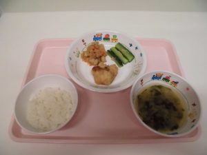 *ごはん *みそ汁 *魚のフライ *切干大根の煮物 *スティックきゅうり