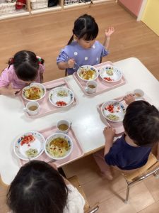 給食ではとっても可愛い鬼カレー🍛でしたよ💖
