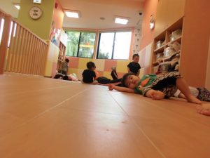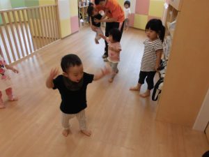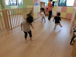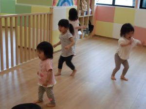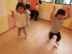 朝なのに空が暗かったですね(>_<)                     でもサンライズキッズ大津園は久しぶりに 子どもたちが全員登園し、にぎやかで 明るくなりました!!! 久しぶりにみんなが揃うとこんなにも にぎやかになるのですね♪ 子どもたちもお友だちが全員来て、 なんだか嬉しそうでした(*^_^*)                               みんな揃ってリトミック遊び!! 前まで個々に楽しんでいた姿が多く 見られていたのですが、今日は お友だちと目を合わせたり、 手を繋ぎながら歩いたり、 横に並んで同じ動きをしたりと 楽しんでおられましたよ☆