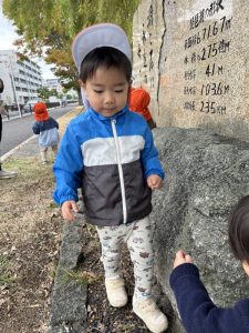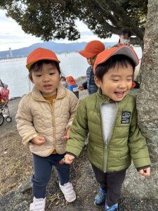 りんご組のお友だちは、湖岸へどんぐり拾いに行きました